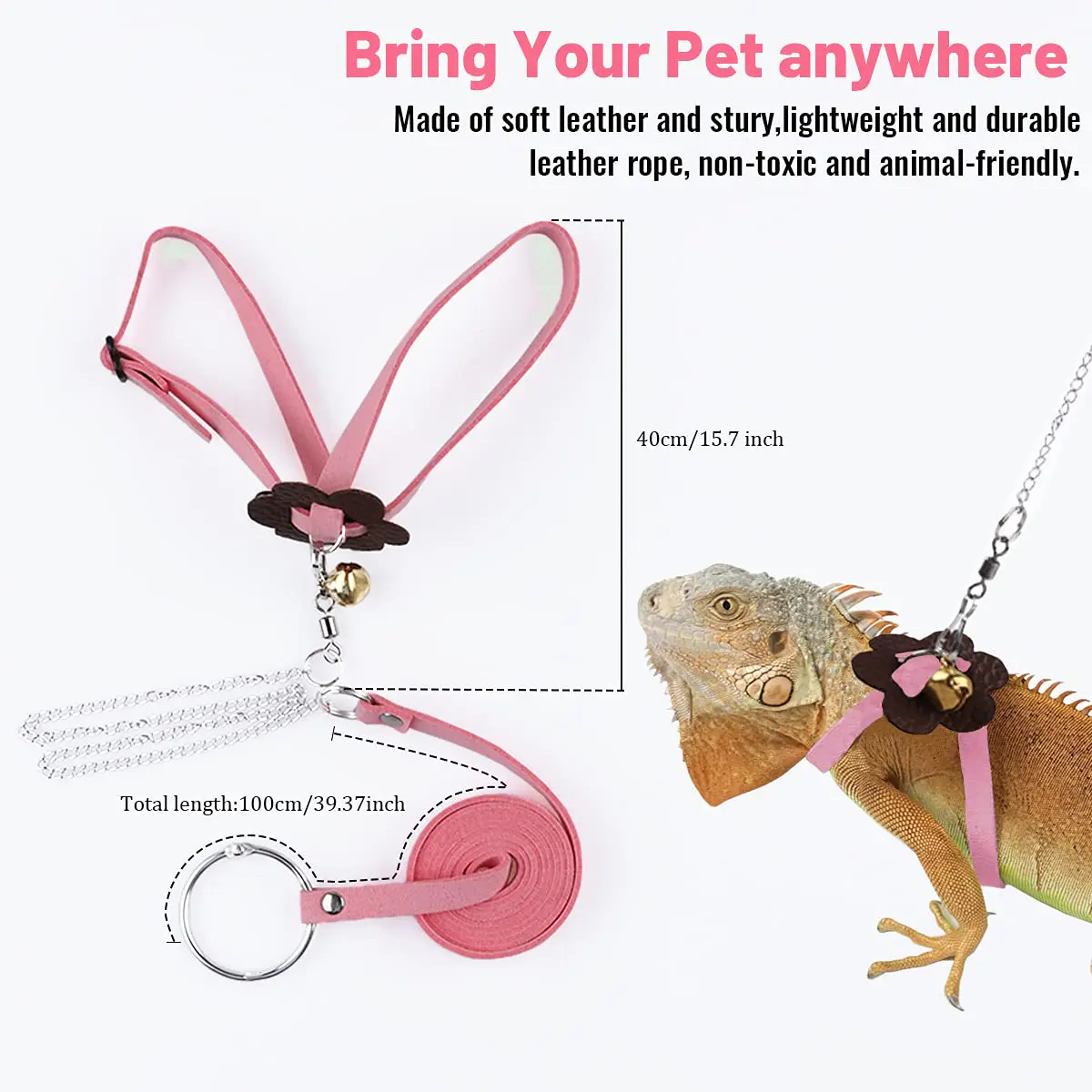- Anti-Bite Design & Openable Loop - The lower part of the leash is made of a metal chain, which prevents the lizard from biting and destroying the rope.